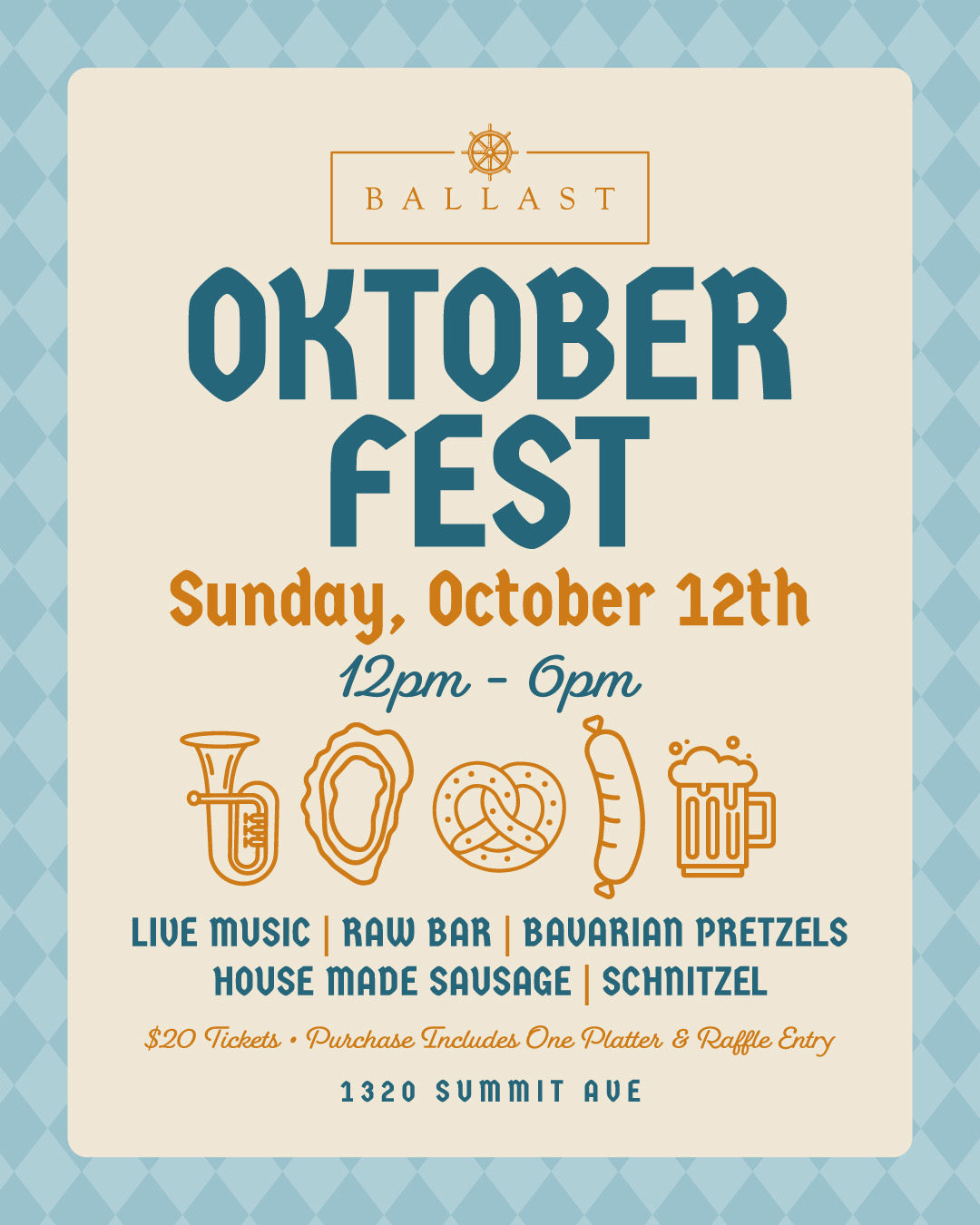Grab your lederhosen because we are hosting our first Oktoberfest at Ballast in Scott's Addition on Sunday, October 12.